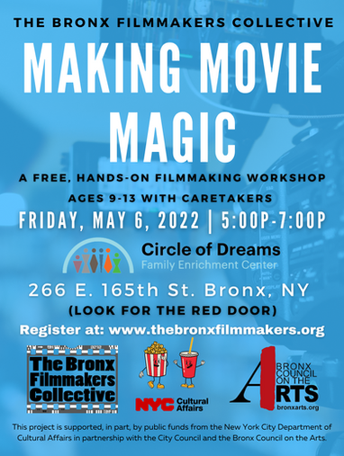 The Bronx Filmmakers Collective offers introductory film education in the Bronx to children, teens and adults. Below are a sampling of flyers for previously offered classes. If you'd like information on upcoming programs please be sure to subscribe to our newsletter and to follow us on social media.
